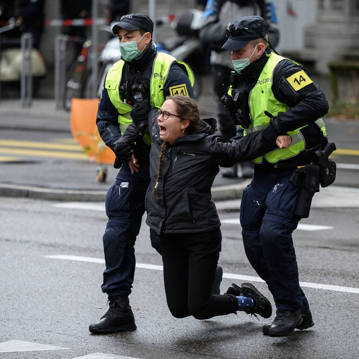 Extinction Rebellion attempted blockade of Zurich October 5 2021 by Editorial Team Almost 300 Extinction Rebellion activists some disguised as clowns tried to blockade the center of Zurich on Monday to force the Swiss government to heed the climate demands of the environmental movement. Published on October 04 2021. A climate activist of Extinction Rebellion is carried away by police officers during a protest in the city centre of Zurich Switzerland October 4 2021.
